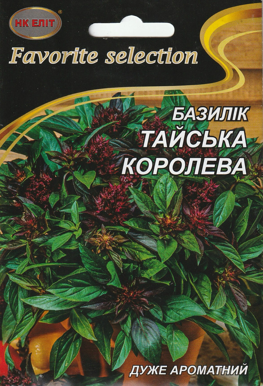 Базилік "Тайська королева" формує розлогий кущ заввишки до 50-60 см із густим листям насиченого зеленого кольору. Його головна особливість — декоративні фіолетові квіти й пурпурові стебла, які надають рослині незвичайного й привабливого вигляду. Аромат сорту поєднує солодкі й пряні нотки з відтінками анісу та кориці, що робить його незамінним для азійської кухні.